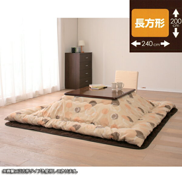 フリースを使用した、優しい肌触りのこたつ掛け布団です。長方形タイプをご用意しました。軽くて保温効果に優れたポリエステルのワタを使用しています。梱包形態はかさ張りを防ぐため、真空圧縮パックにしています。パッケージは取っ手付なので、持ち運びに便利です。●商品サイズ(約)幅200×奥行240cm●綿の充填重量1535g●主要材質 表地・裏地・詰め物:ポリエステル100%