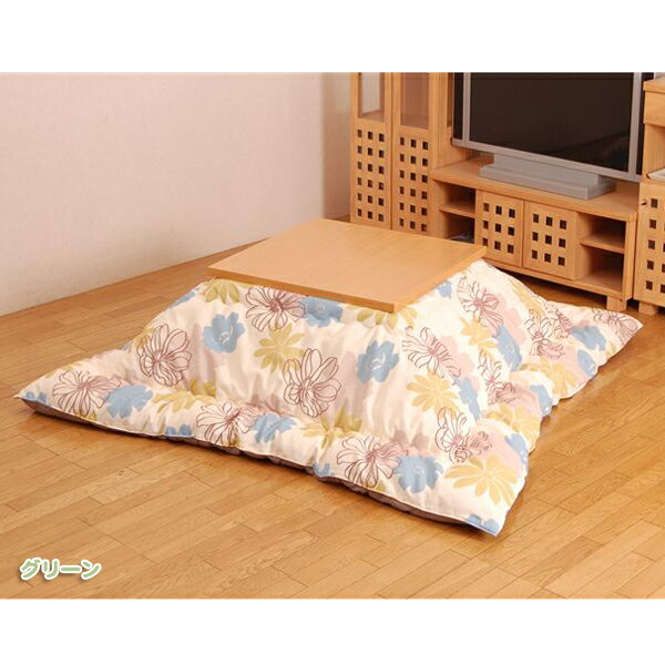 【TD】こたつ掛け布団【75角?80角用】カントリー調 プチ180×180cm省スペースタイプ グリーン・ローズ【取寄せ品】□□□
