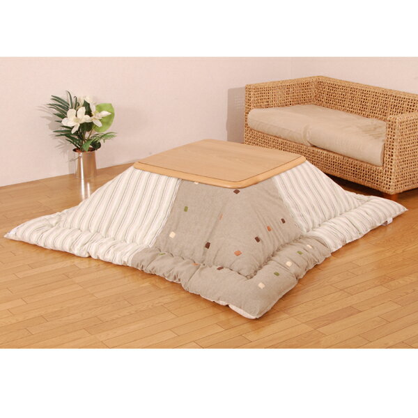 カントリー風なこたつ省スペース掛けふとんです。◆商品サイズ(約):たて180×よこ180cm◆商品仕様表地:綿100%裏地(毛羽部)アクリル100%(基布部)ポリエステル100%中素材:ポリエステル100%◆適用タイプ:75角?80角用