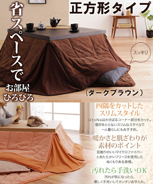 コンパクトでもあったか、ぬくぬく。【送料無料】洗える省スペースこたつ掛け敷きふとんセット【Utona】うとな/正方形※同梱不可 ・全色1月上旬の発送予定です
