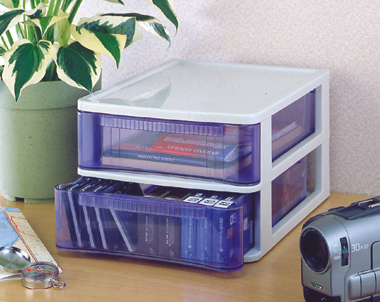 小物類の整理整頓に便利なホワイトのフレームとスチロール製クリアブルーのおしゃれな引出しのチェストです。引出しにはA4サイズまでの書類が入り、脱落防止用のストッパーが付いています。引き出しにはMDを立てた状態で収納できます。また、チェスト底面には傷防止用のゴムが付いています。◆商品サイズ(約):幅25.2×奥行32.2×高さ18.1cm◆引出内寸(約):幅21.6×奥行30.0×高さ7.1cm◆主用素材:ポリプロピレン、スチロール